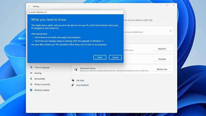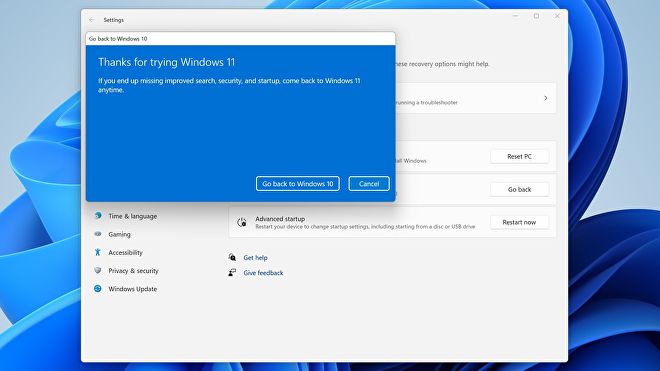 第 5 步:最后,单击返回以确认您要切换。经过短暂的等待(包括重置),您将返回 Windows 10。