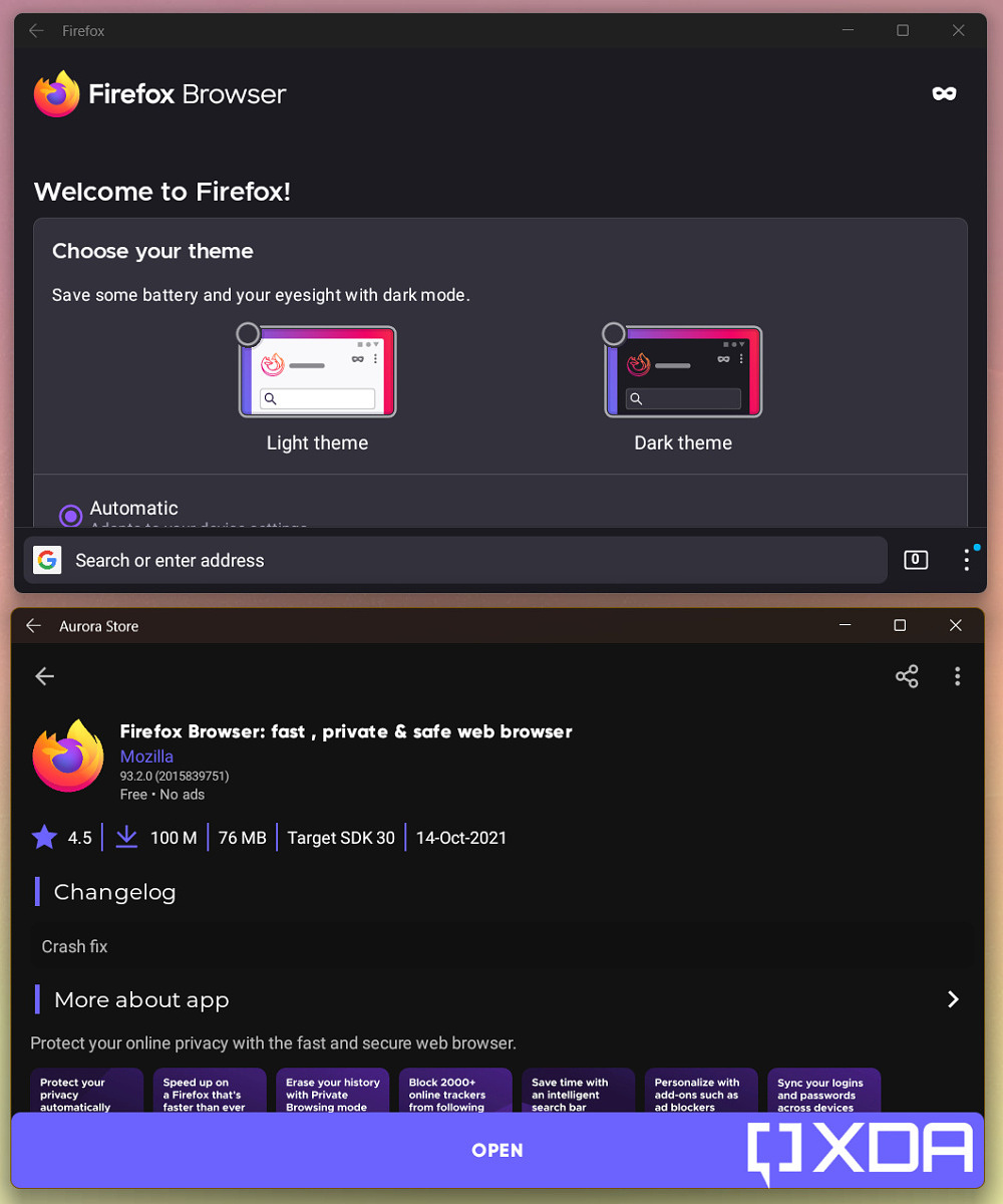 在 Windows 11 上从 Aurora Store 安装的 Firefox