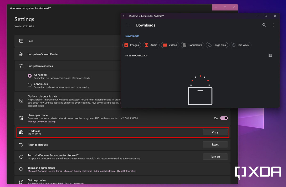- 确保 Windows Subsystem for Android 环境正在运行并且您可以通过 ADB 访问它。
