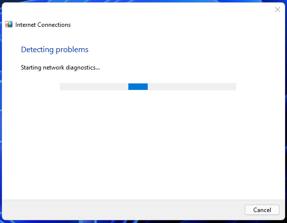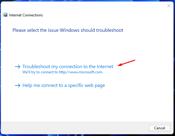 - 屏幕上将弹出一个新窗口,然后单击“对我的 Internet 连接进行故障排除”以运行扫描。