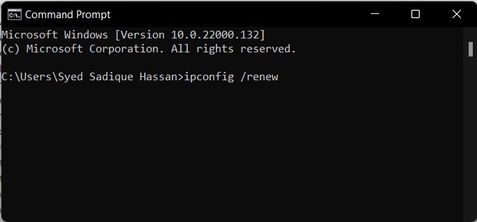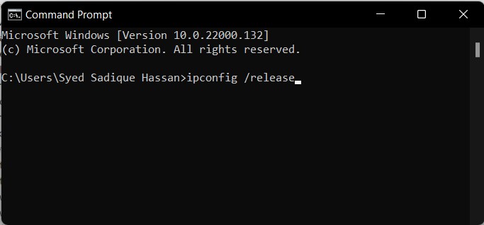 此错误的最常见原因之一是 Internet 协议配置不正确。在这方面,您的首要行动应该是放弃当前配置并更新其新实例。所有这些都可以从命令行窗口本身适当地进行,方法如下: