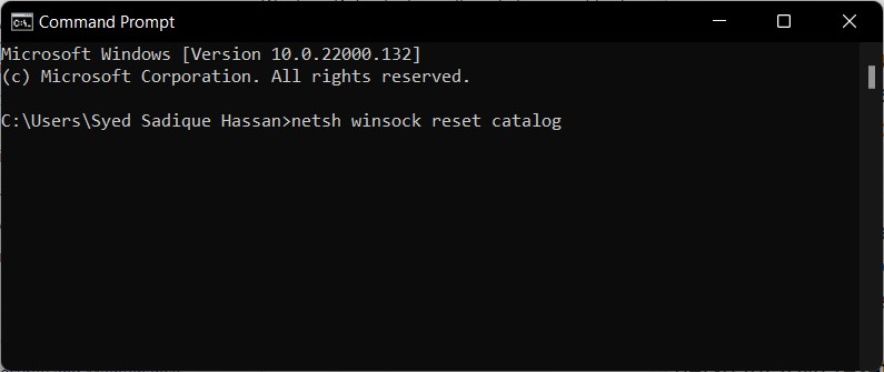 - 然后键入以下命令以重置 Winsock。如果它有任何不正确或损坏的条目,它也会被删除:
