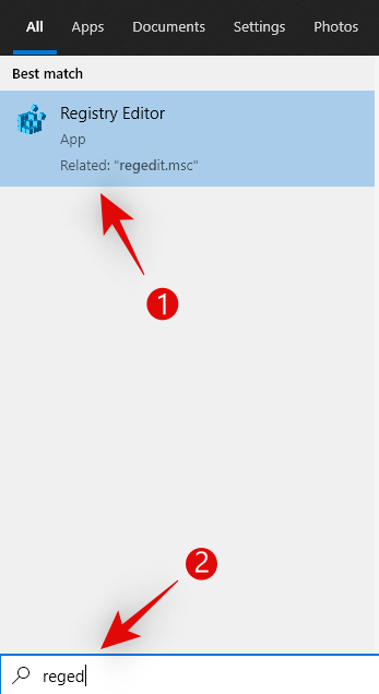 单击开始图标并输入“Regedit.msc”。一旦应用程序出现在您的搜索结果中,就启动它。