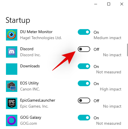 如果一切正常,Discord 现在应该在您系统上的启动应用程序中被禁用。