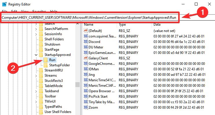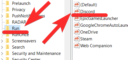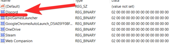 打开 Run 后,您可以在右侧看到二进制值列表。查找 discord 并将其从列表中删除以禁用自动启动。