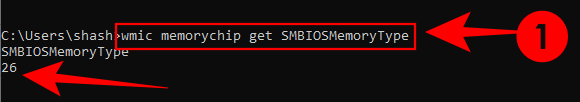 wmic memorychip get memorytype 输入此代码并按 Enter。