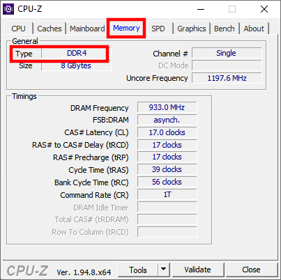 然后您可以安装第三方软件来确定您的 RAM 类型是 DDR3 还是 DDR4。最值得信赖的是CPU-Z。