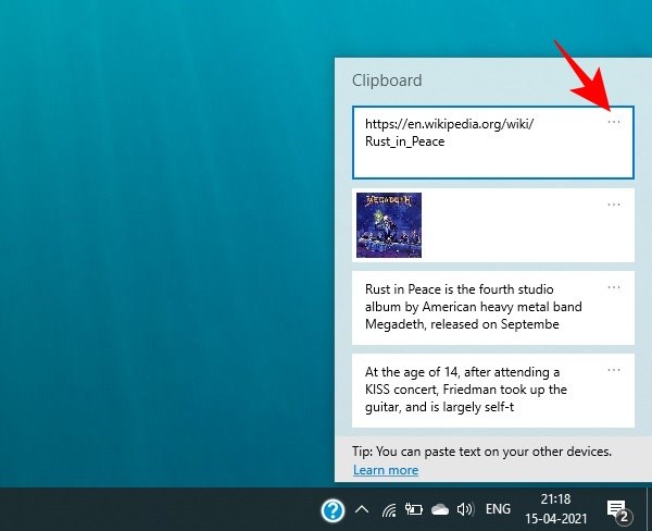 可以使用简单的热键组合Win+V访问现代 Windows 10 剪贴板 。如果您启用了历史记录功能,您应该会看到一个小窗口打开,以小笔记形式显示最多 25 个复制的内容项。
