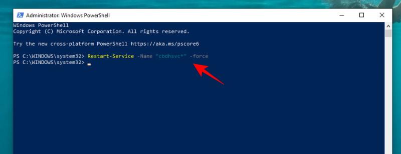 现在,在 PowerShell 中复制以下命令,然后按 Enter:
