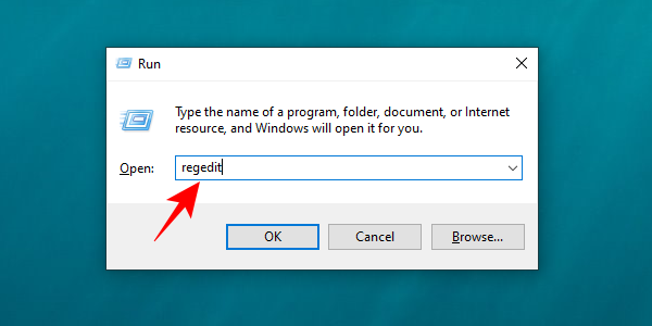 您还可以向桌面上下文菜单添加“清除剪贴板选项”。为此,请按Win+R 调出 RUN 框,键入“regedit”,然后按 Enter。