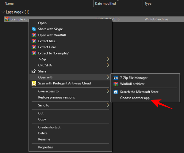 右键单击压缩文件,然后单击 打开方式,然后选择另一个应用程序。