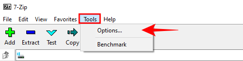 在 7zip 文件管理器中,转到Tools,然后 转到 Options。
