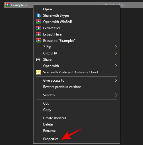 右键单击压缩文件,然后单击属性。