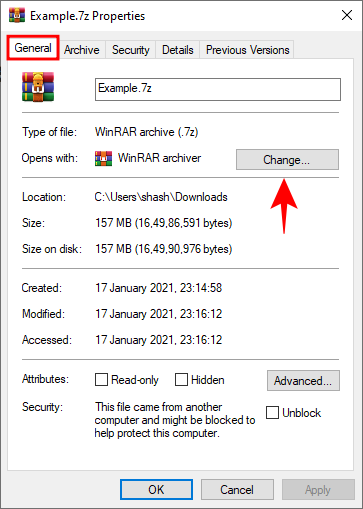 在 General 选项卡下,单击 Change。