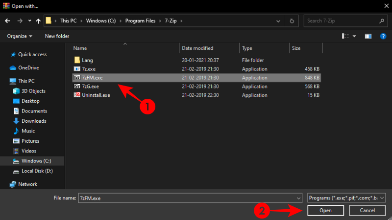 方法#2 – 在Windows 资源管理器中将 7zip 设置为默认值