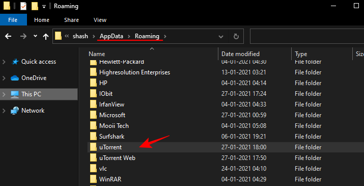 然后进入 Roaming 文件夹并找到 uTorrent。
