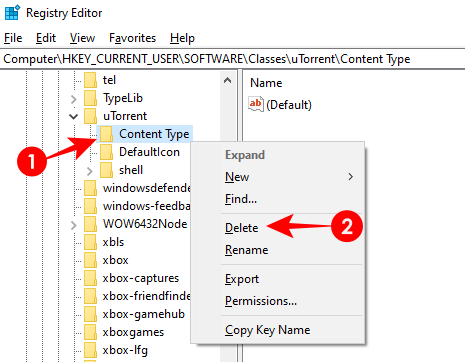 现在,转到以下地址:HKEY_CURRENT_USER\SOFTWARE\Classes\uTorrent