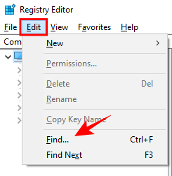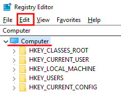 然后,为了安全起见,在整个注册表中搜索 µTorrent。为此,单击注册表中的计算机,然后单击上面的编辑选项。