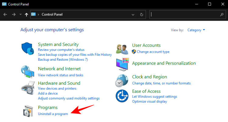 在程序下,单击卸载程序。