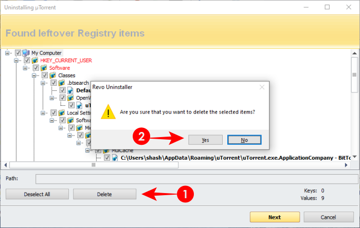 为确保从您的计算机中删除 µTorrent 的所有痕迹,您必须深入研究注册表并手动删除这些文件。