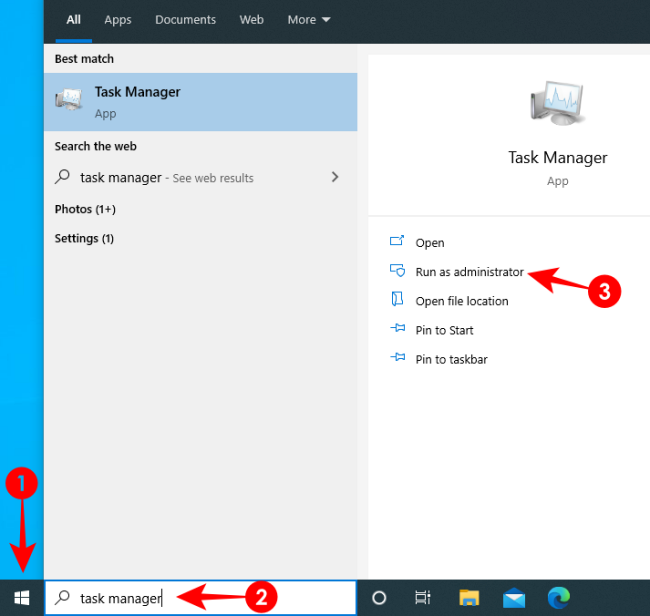 按 Ctrl+Alt+Esc 打开任务管理器。或者,您可以从“开始”菜单中以管理员身份搜索并运行任务管理器。