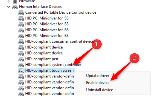 如果您想稍后重新启用它,只需在设备管理器中右键单击 HID 兼容触摸屏,然后单击上下文菜单中的“启用设备”。