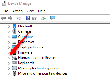 在设备管理器中,找到人机接口设备,然后单击它旁边的向右箭头。