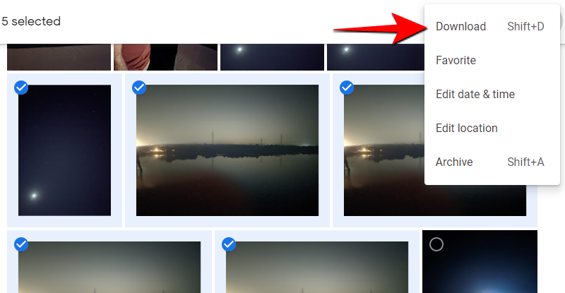 要下载多张照片和视频,请不要单击一个,而是将鼠标悬停在其上方并单击其左上角的勾号以将其选中。