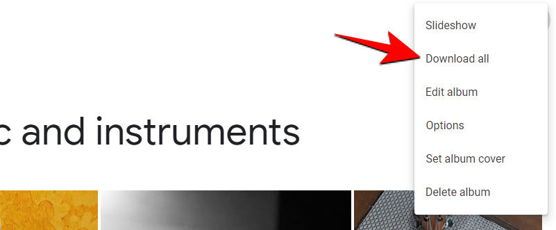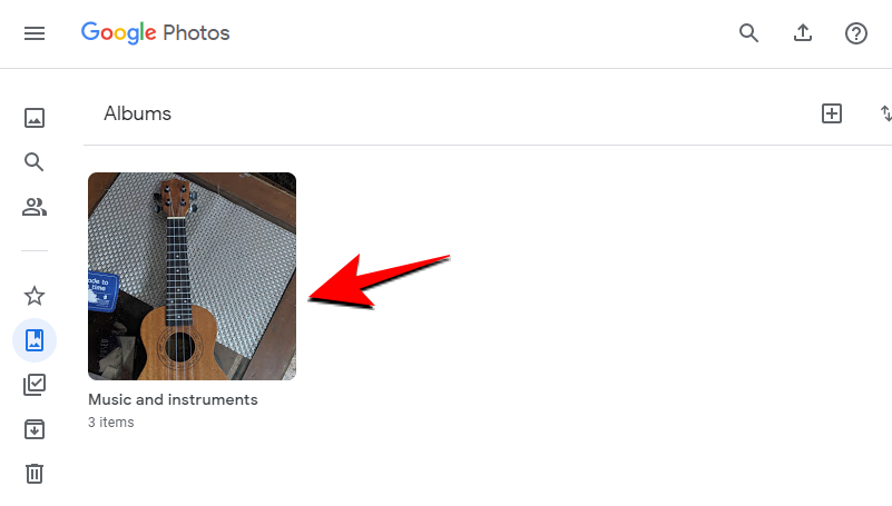如果你是那种按相册分类照片的人,你可以将整个相册下载到你的电脑上。要做到这一点,点击 相册在谷歌图片的左侧面板。
