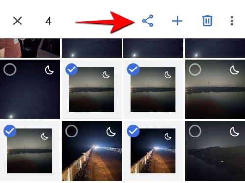 在 Google 相册中选择您的照片,然后点击底部的分享 。