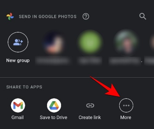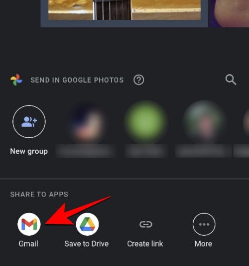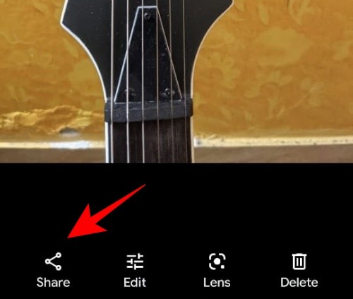 在 Google 相册应用中,打开您的照片并点击底部的分享 。