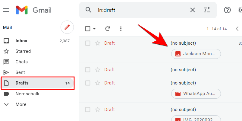 现在,在您的 PC 浏览器上打开 Gmail。然后单击侧面板中的草稿并打开草稿。