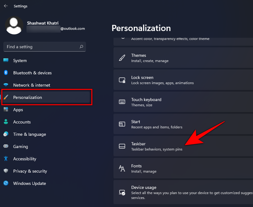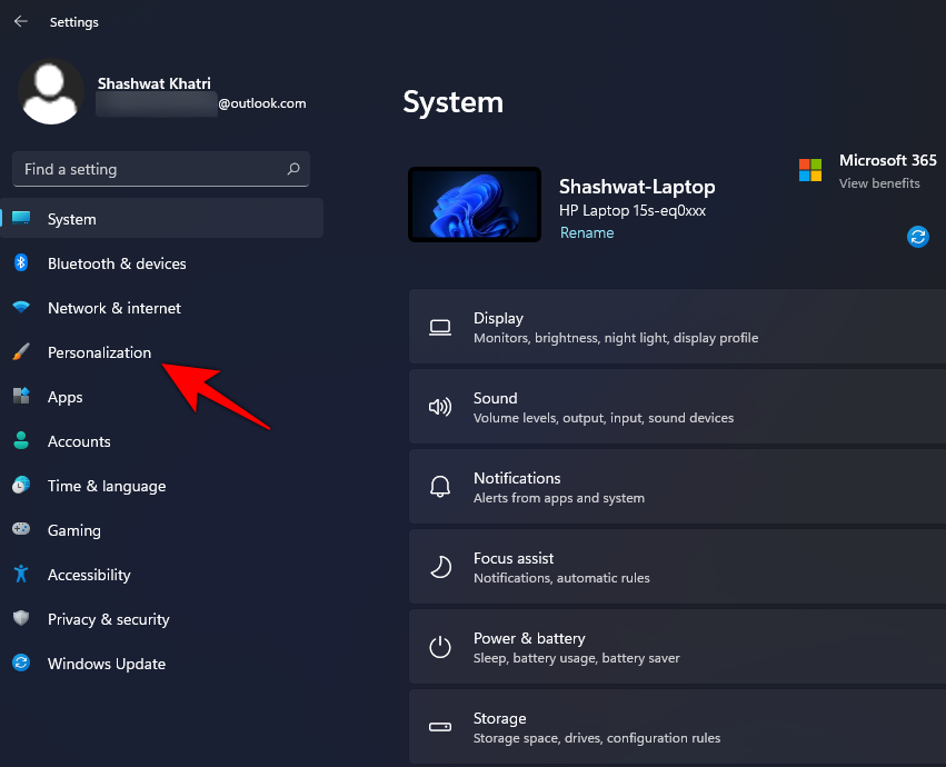 按键盘上的“Windows + I”打开设置。单击并打开左侧面板中的“个性化”。
