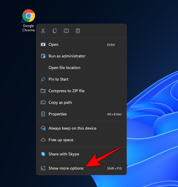 将应用程序添加到任务栏的另一种方法是右键单击应用程序的图标,然后选择“显示更多选项”。