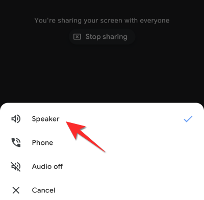 现在点击扬声器选项,您将能够在会议中共享您的音频。
