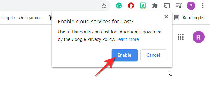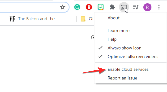 放置投射图标后,再次右键单击,现在选择启用云服务选项。