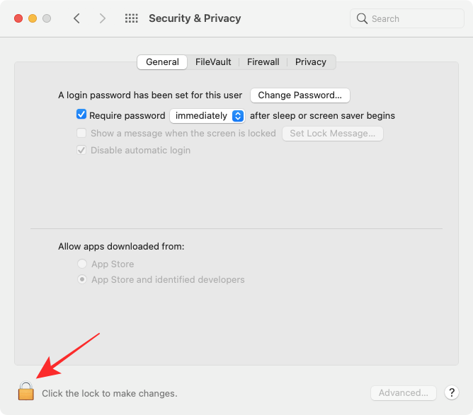 如果左下角的锁定图标被锁定,您需要将其解锁才能更改您的权限。为此,请单击锁定图标并输入 Mac 的密码/PIN。