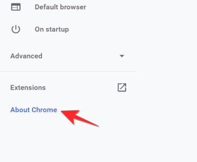 在“设置”菜单中,单击左侧面板中的“关于 Chrome”选项。