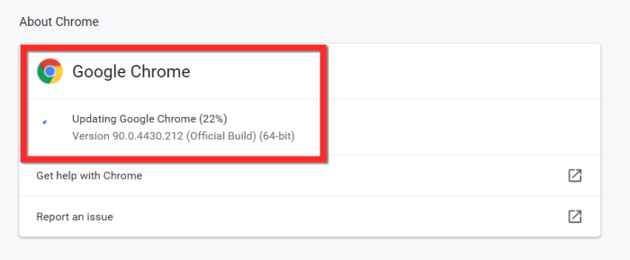 单击“关于 Chrome”选项后,待处理的更新将自动开始下载。