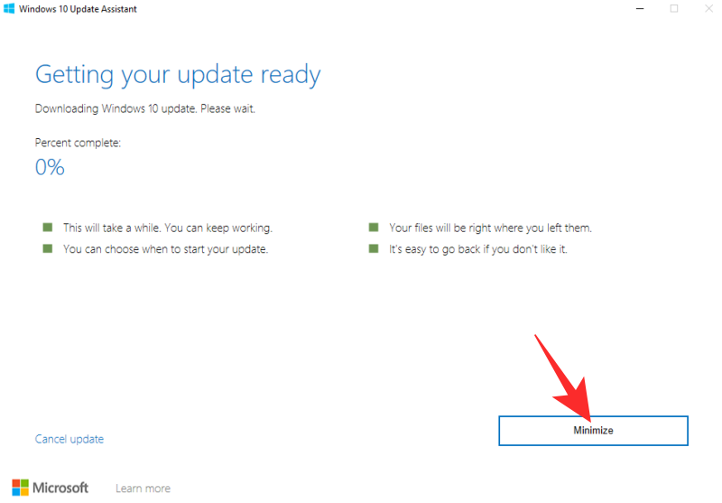 就是这样!更新将在几分钟内下载并安装。您可以选择“最小化”窗口以返回到您的其他任务。