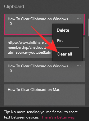 如果您希望一次清除整个剪贴板,请单击顶部的“全部清除”按钮。