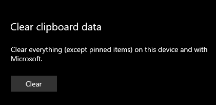 单击它后,您将找到与剪贴板应用程序相关的可用自定义选项。向下滚动到页面底部,您会找到“清除剪贴板数据”横幅。单击“清除”按钮清除剪贴板上的所有内容。