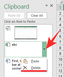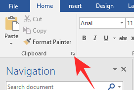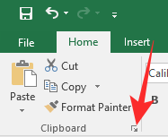 在屏幕的左上角,您会找到“剪贴板”部分。单击启动器 – 对角箭头 – 在其右下角。