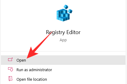 首先,通过单击左下角的搜索栏并单击“打开”来查找“Regedit”。