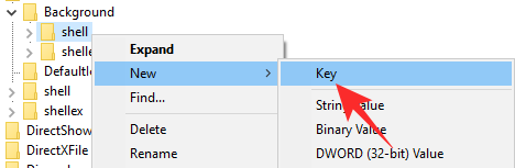 接下来,右键单击“Shell”文件夹并创建一个新密钥。