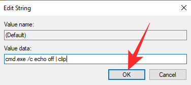 现在,选择左侧的“CMD”键,双击右侧的值。将以下命令作为其值: