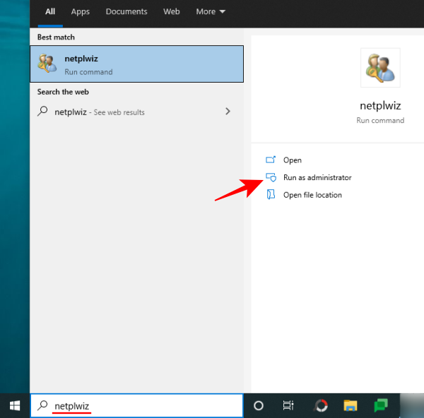 为此,打开开始,键入“netplwiz”,然后单击以管理员身份运行(是的,您必须具有管理员权限才能将其授予另一个帐户)。