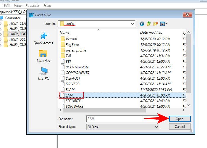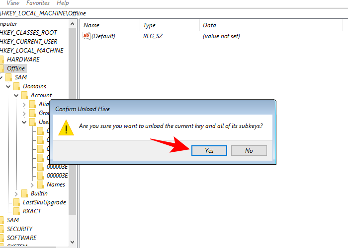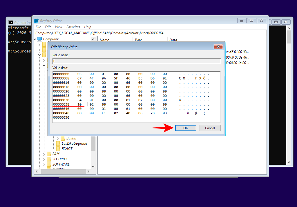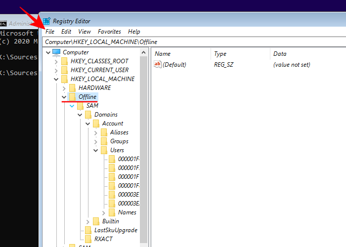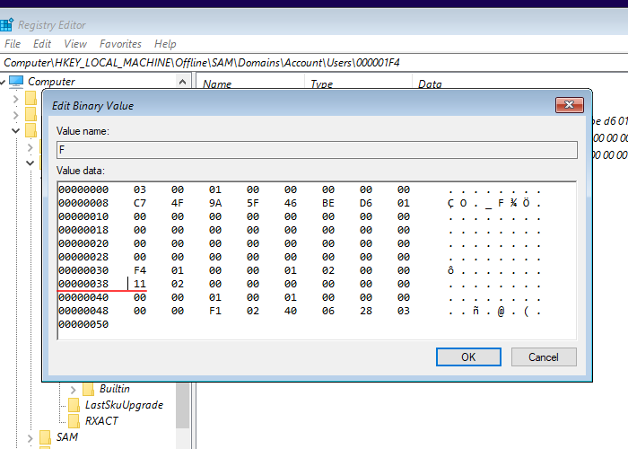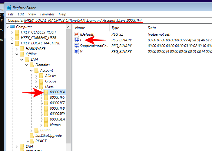 HKEY_LOCAL_MACHINE\Offline\SAM\Domains\Account\Users\000001F4