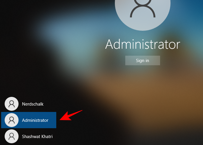 现在,关闭所有窗口并重新启动计算机。启动后,选择 管理员 帐户(这是新的管理员帐户,没有任何密码)。