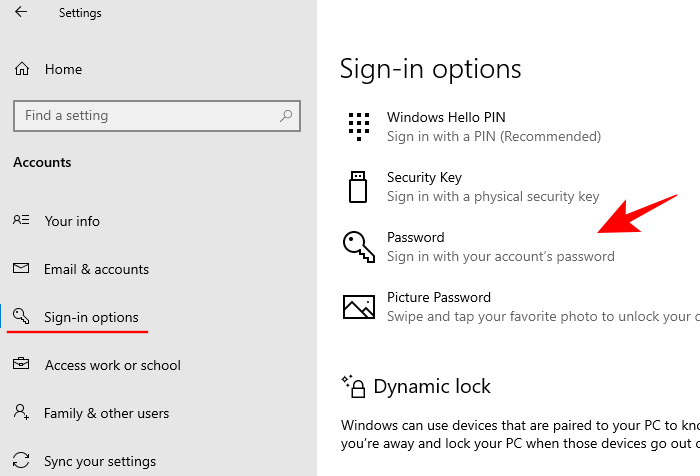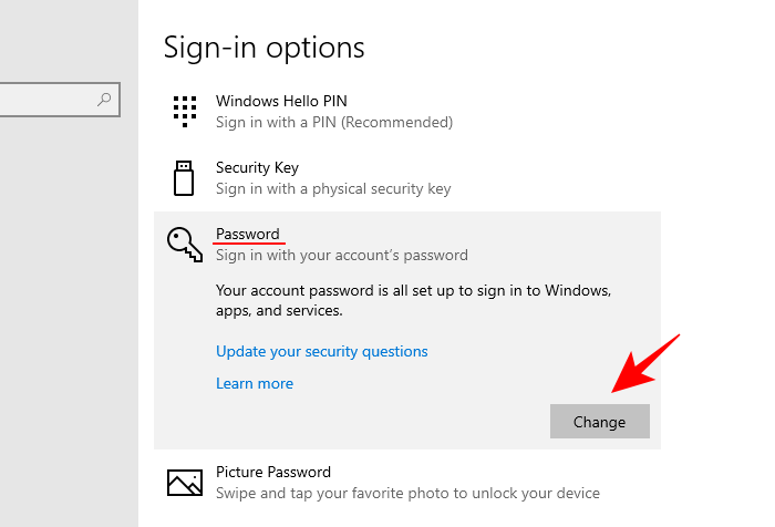 在左侧面板中选择 登录选项;在右侧,单击 Password。